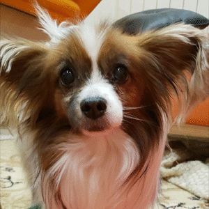 This sweet pup is now spending cozy days with us at the café, hoping to meet kind visitors and maybe… a forever family.